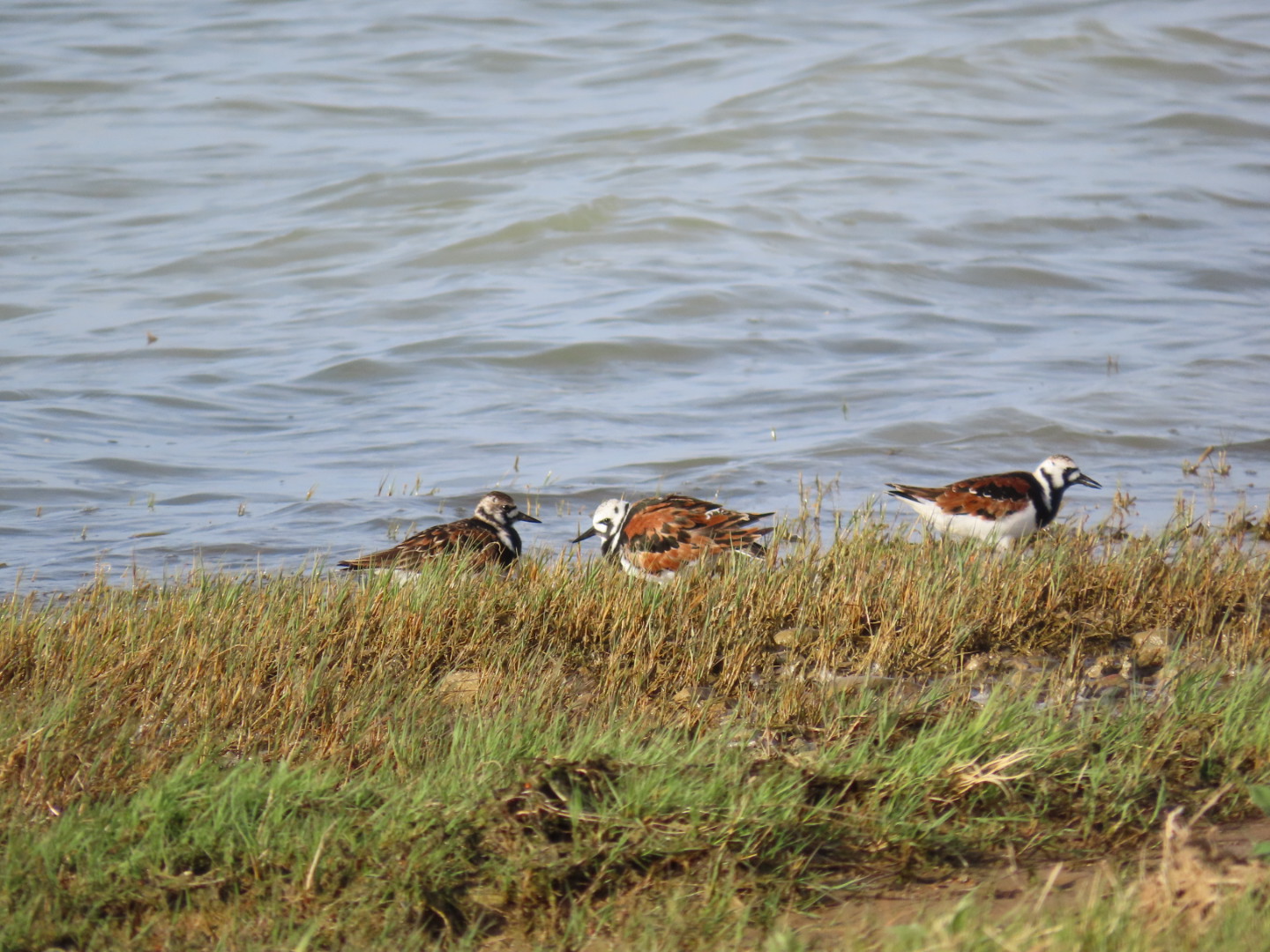Quite incredible with a group of 4 not found in the State before. People were camping around the lake in their vehicles, dogs were running around with generators running. We birded inbetween the campers & when we came to the west corner, we couldn't believe our eyes. We both said "Ruddy Turnstones" simultaneousl! All 4 were in breeding plumage. The Killdeer kept chasing 1 in particular.