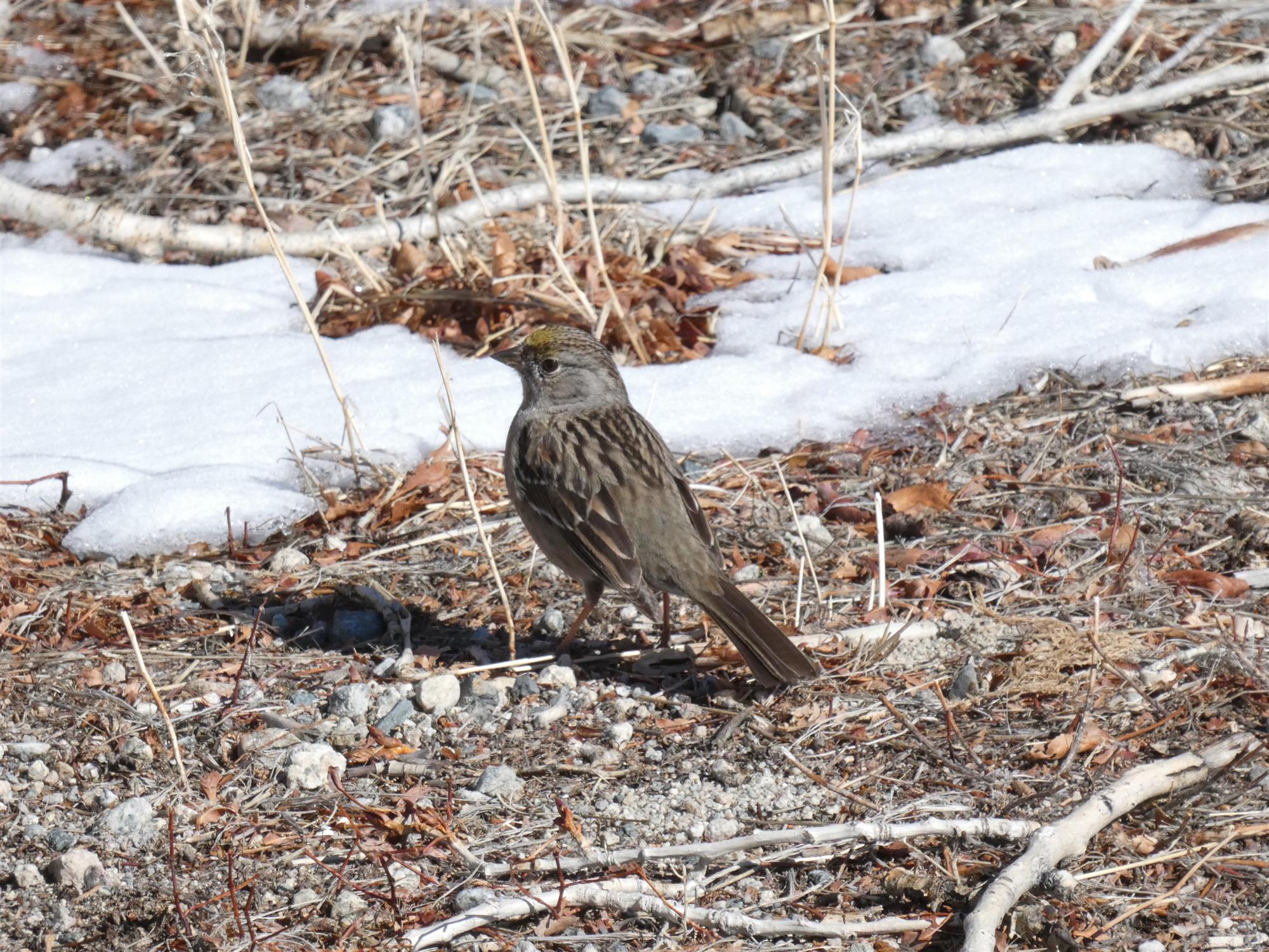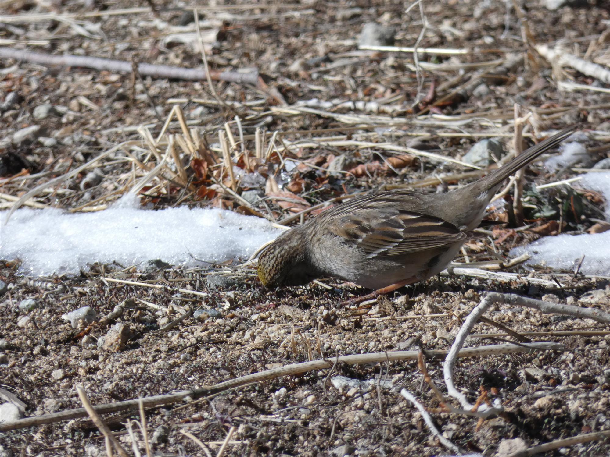 I have seen this bird before in Colorado at Red Rocks and in Alaska, so I knew what it was, but wondered about the dark brown (not black) crown border, crown not extending very far back onto the head, and eyeline, for that I checked Sibley.