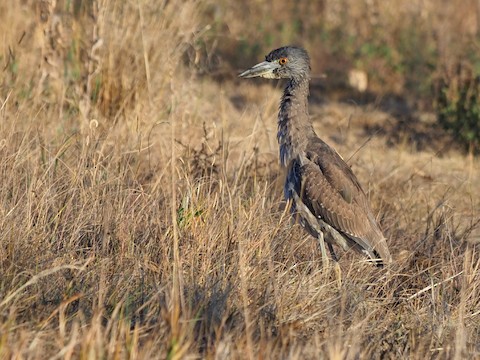Juvenile Black-crowned Night-Heron was eliminated because of the all dark thick bill, no obvious chest streaks, and few white spots on the wings.