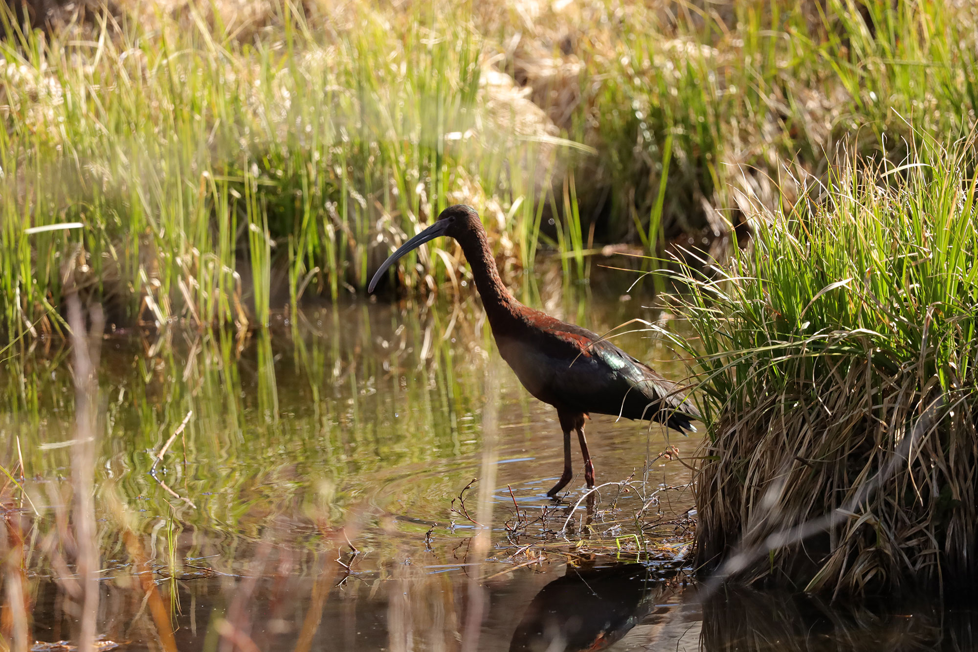 Glossy Ibis. It was elminated because the observed bird had red eyes.