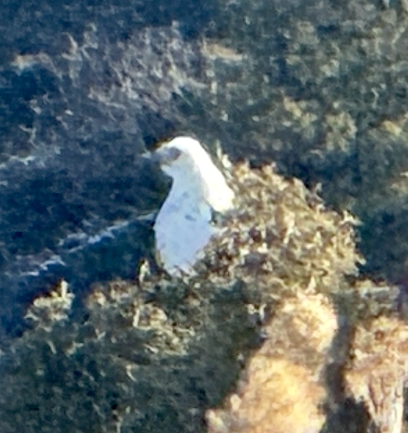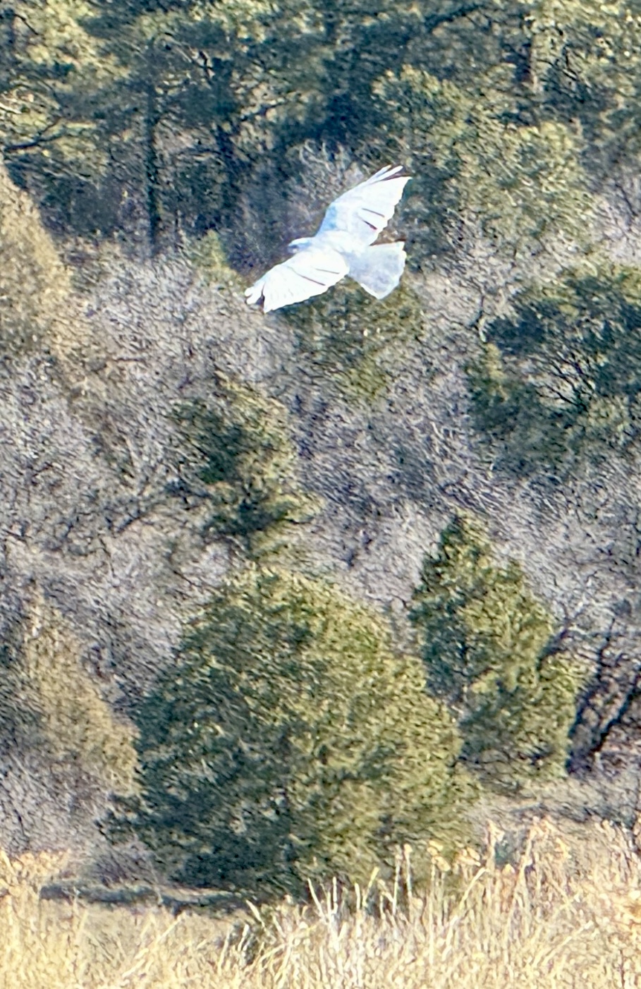 Totally whitte. About 2 feet wingspan. Was perched in tree, then flew off.