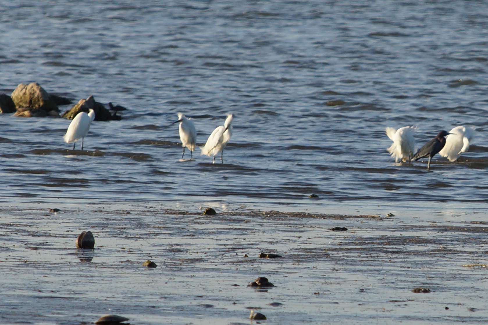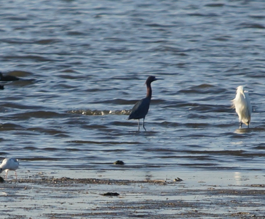 Eliminated Great Blue, too small, wrong color. Looked exactly like Little Blue Herons from my days in Kansas.
