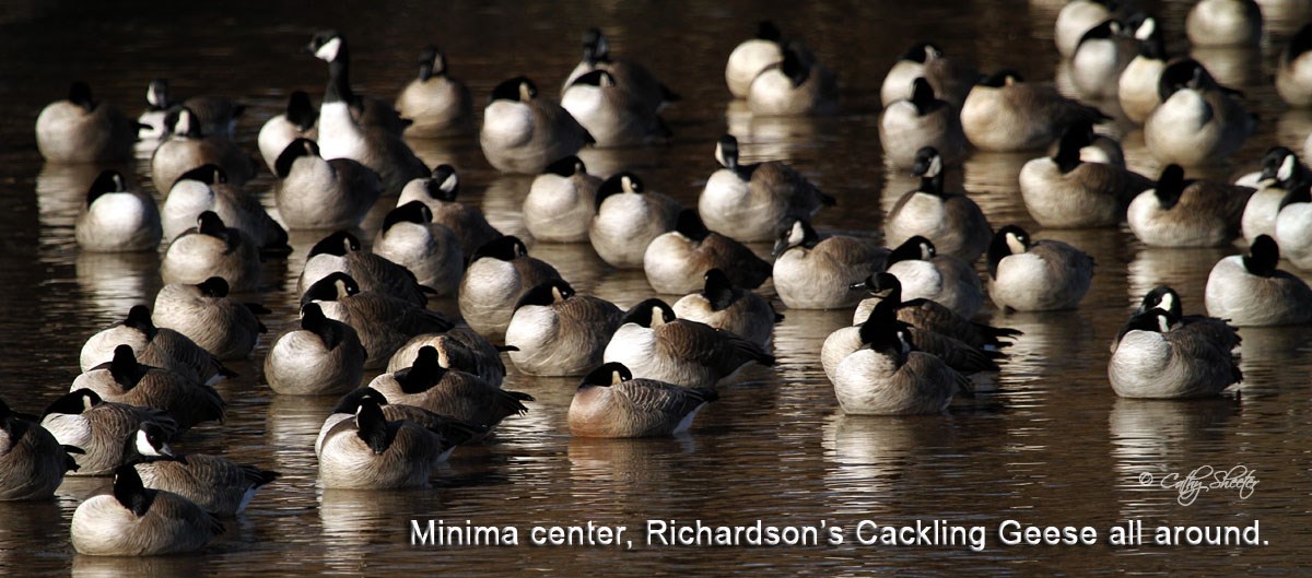 I have extensive experience with Richardson's Cackling Geese, and moderate experience with Taverner's Cackling Geese. My experience with Minima is pretty limited, but includes a bird found in the winter of 2012/2013 here in CO and talking in depth with Steve Mlodinow about that bird. I do not have any experience with Aleutians except what I have read and discussed with Steve.