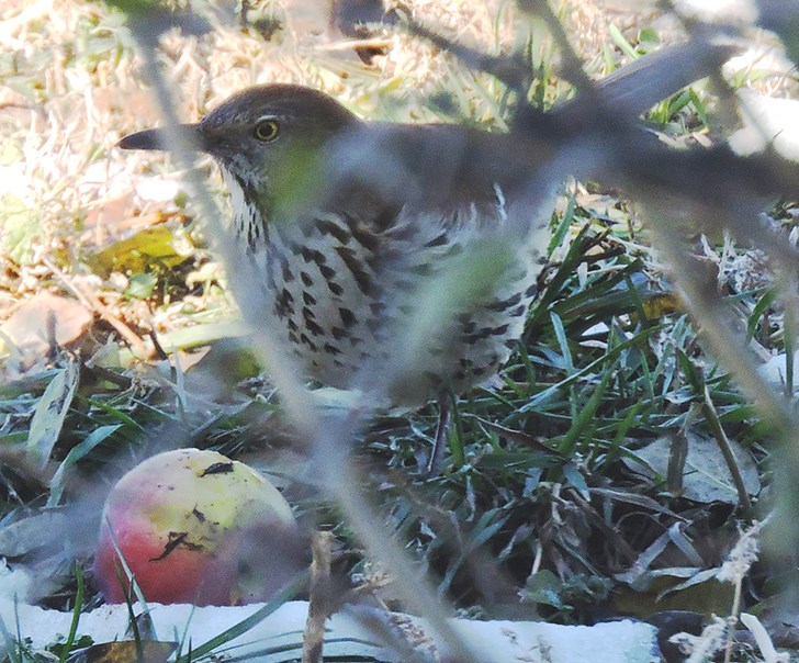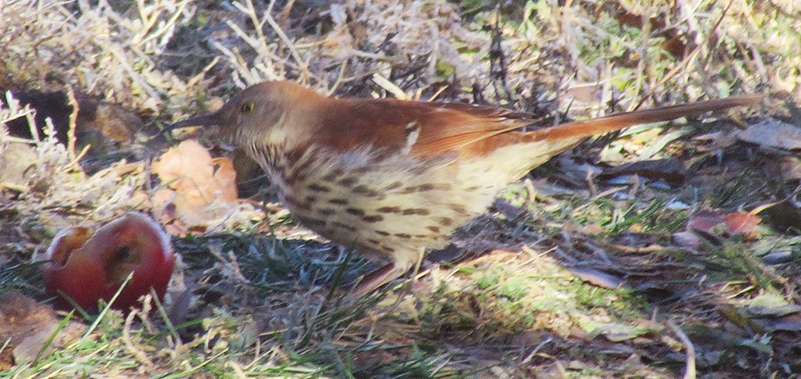 scraping leaves under honey suckle bushes, also seen eating fallen apples