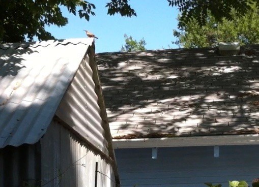 I heard the unmistakable song as soon as I stepped outside into my backyard. It was perched 20 feet from me. I went back inside to get binos and camera (iphone). It had flown into my neighbors yard, ~60' away. Still easy to see with binos. Very reddish color, white throat, dark bands on tail, and long bill. I played the calls & song on the BirdsEye West Iphone Application and it flew back into my yard. I recorded an 11 second video but it didn't sing. I then watched/listened to it from my office window. It was close by and singing and calling frequently from 11-12. Heard it less and farther away from 1200-1:15-ish.