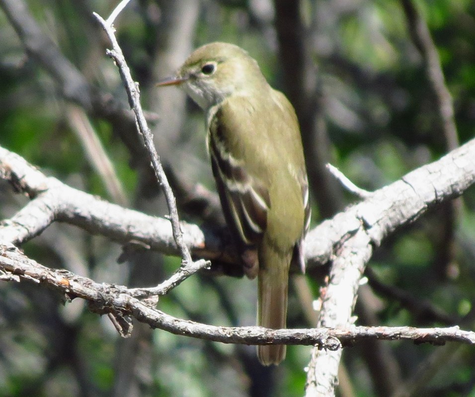 The bird was found moving around among clusters of small trees with open areas in between, favoring low perches. The bird had an olive-colored back; a broad, straight-sided tail; white wingbars; bright white wing edges; and a narrow, complete eyering. Relative to other empids, it had a large bill and moderate/long primary projection. During the period of observation, the bird called "peep" often (dozens of times; recordings included with this report) and sang "rreeBEEa" twice.